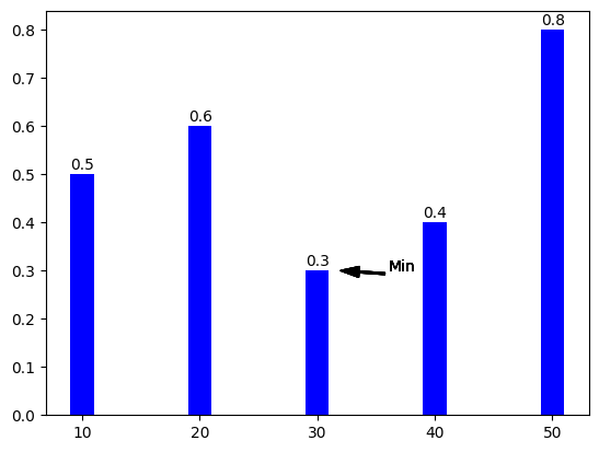 plt.annotate('Min', xy=(32, 0.3), xytext=(36, 0.3),