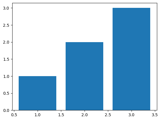 axes[2].bar(n, n**2, align="center", width=0.5, alpha=0.5)