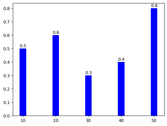 bars = axes.bar(x_bar, y_bar, color='blue', label=x_bar, width=2) # 绘制柱形图