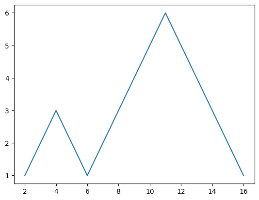 plt.plot([2, 3, 4, 5, 6, 7, 8, 9, 10, 11, 12, 13, 14, 15, 16],